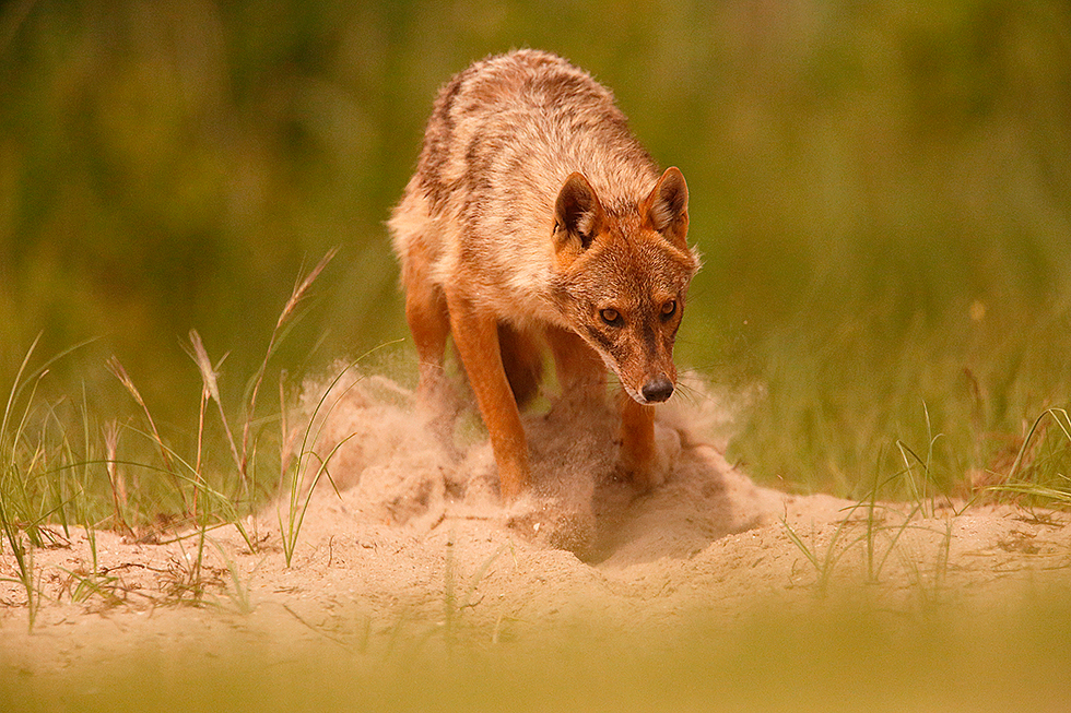 Este chacal no podía sacar el cebo que habían puesto para que los pudiéramos fotografiarlos por lo que se puso a excavar con el fin de llegar a la carroña.