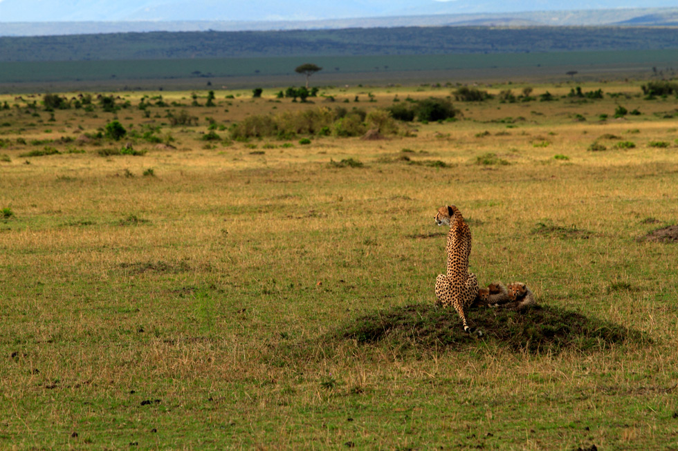 Los guepardos se suelen posicionar en sitios elevados como termiteros, para tener una mejor visión de su entorno