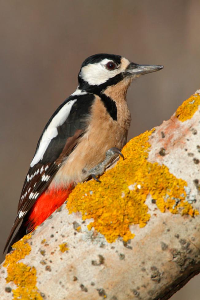 Las hembras no tienen color rojo en la nuca como en los machos, ni como en los ejemplares juveniles que presentan parte de las plumas de la cabeza de color rojo.
